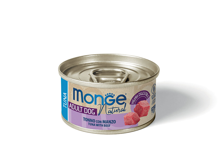 MONGE NATURAL TUNA WITH BEEF is a complementary pet food for adult dogs of every sizes, prepared with a delicious and delicate steam-cooked tuna in jelly. Enriched with tender beef meat, selected for their nutritional properties: highly digestible and biological value. Made in Thailand with no added dyes or preservatives. No Cruelty test. Dolphin Save and Sea Water Fish.