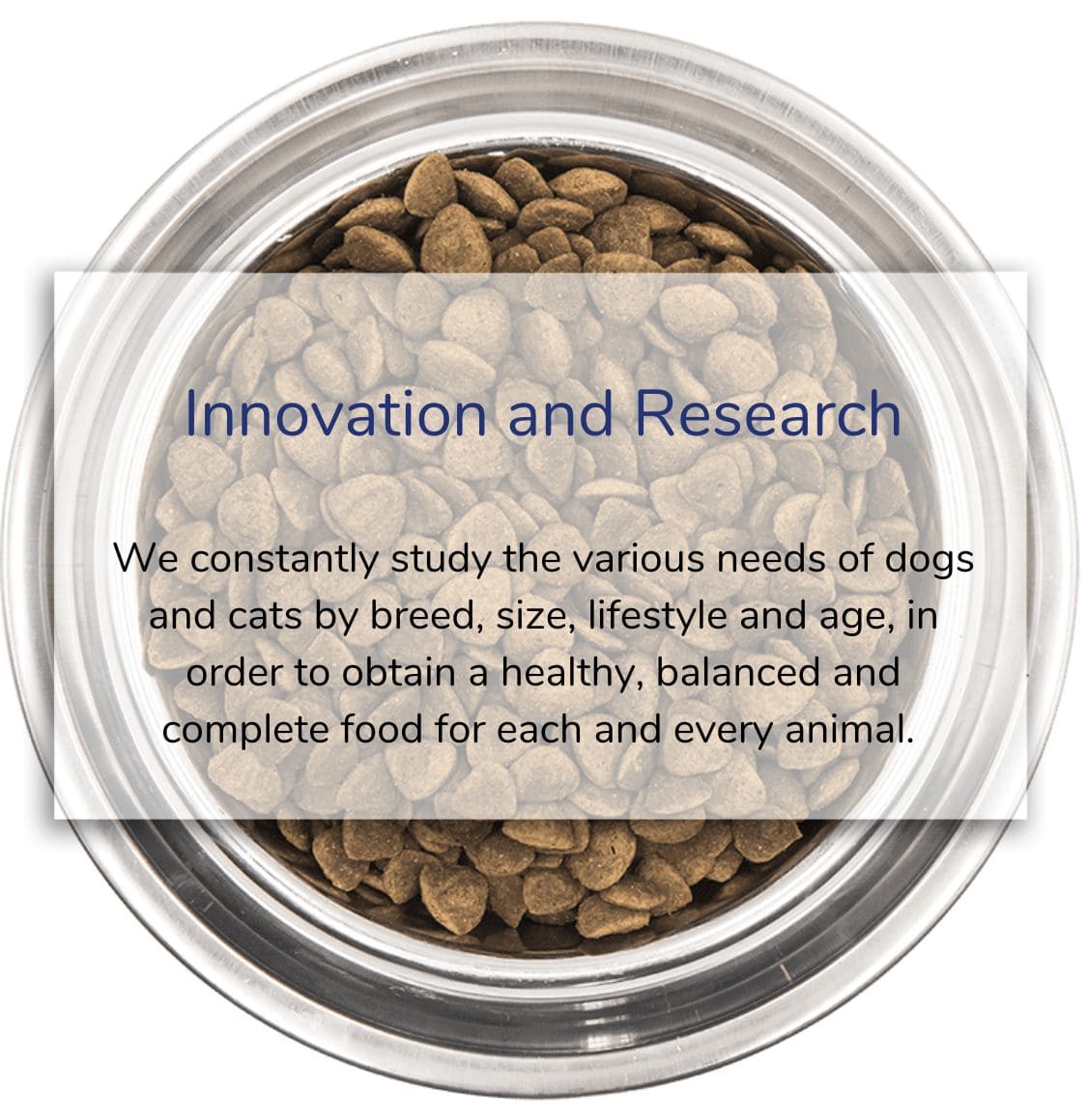 We constantly study the various needs of dogs and cats by breed, size, lifestyle and age, in order to obtain a healthy, balanced and complete food for each and every animal.