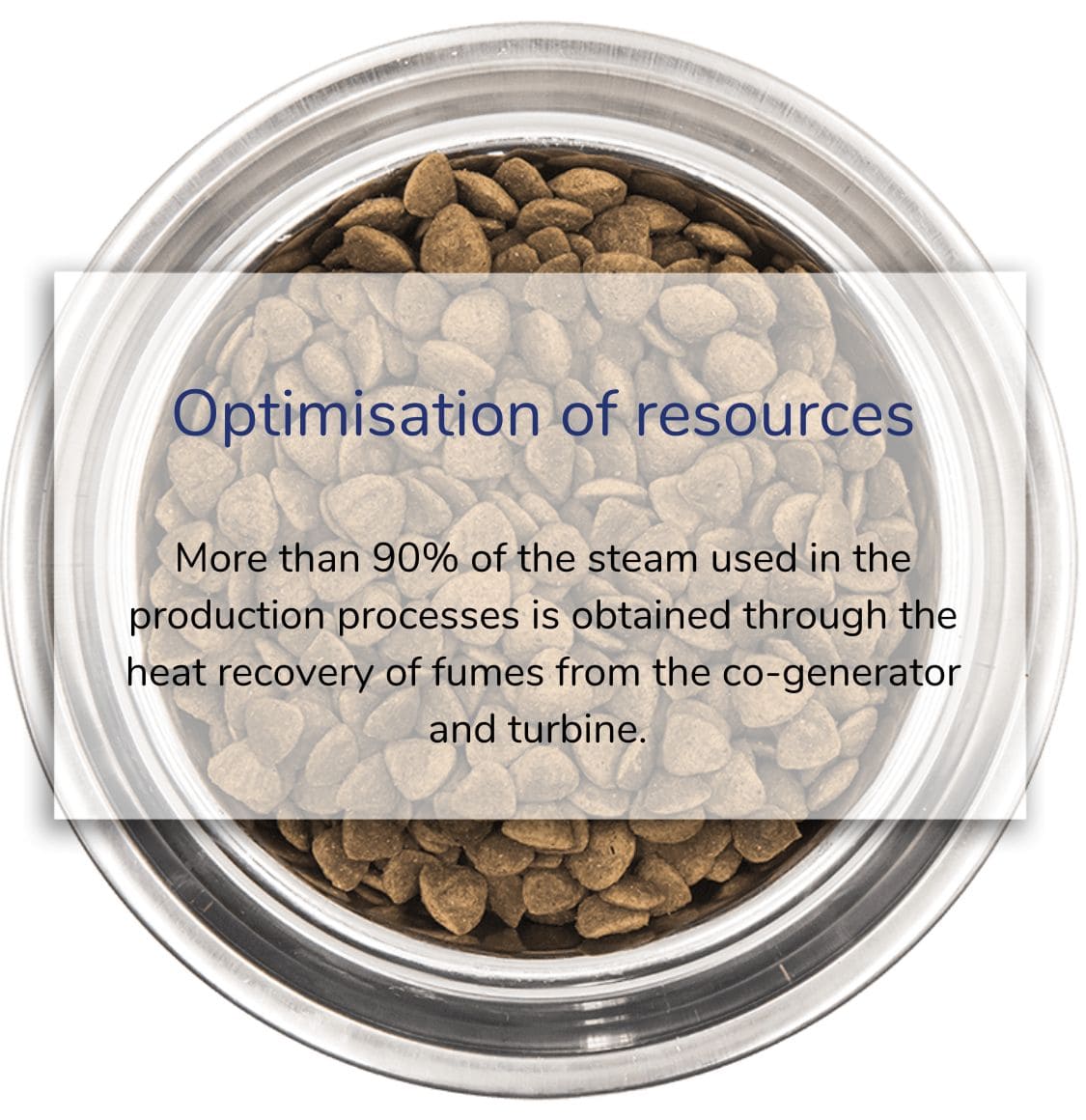 More than 90% of the steam used in the production processes is obtained through the heat recovery of fumes from the co-generator and turbine.