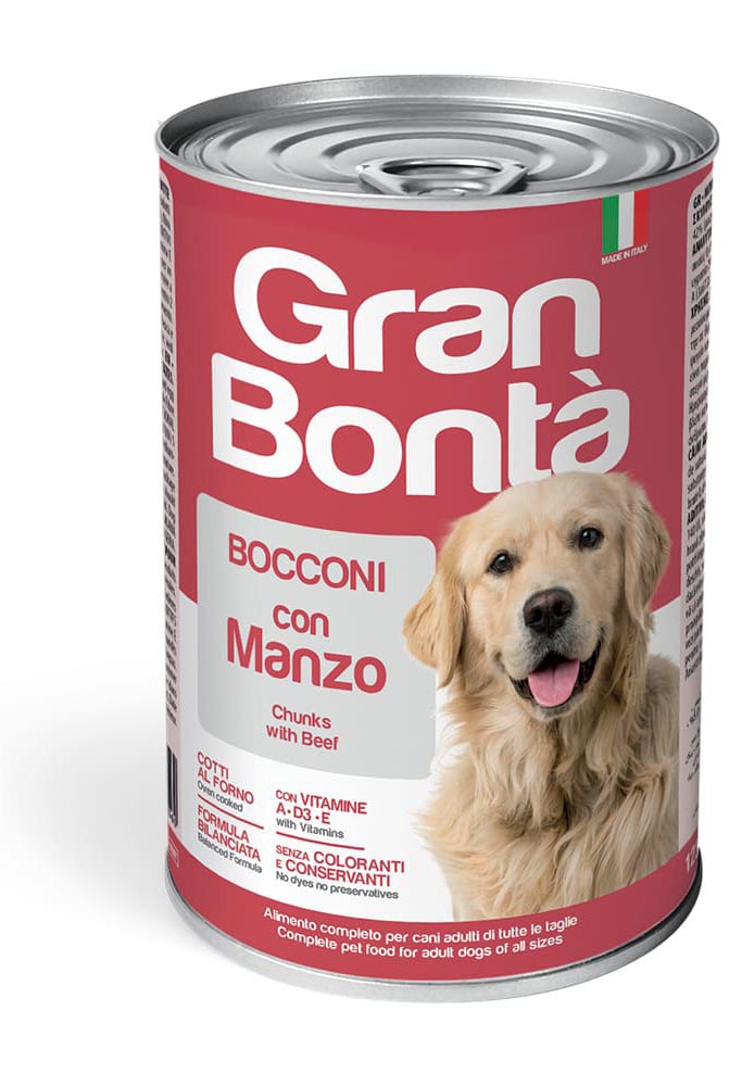 GRAN BONTÀ CANE BOCCONI CON MANZO è un alimento completo per cani adulti di tutte le taglie. I gustosi e delicati bocconi cotti al forno, sono formulati con ingredienti facilmente digeribili come la carne di manzo, fonte di proteine e minerali, per supportare la quotidiana vitalità dei cani. Un’alimentazione bilanciata con vitamine A-D3-E per soddisfare le esigenze nutrizionali degli animali. Senza coloranti e conservanti artificiali aggiunti. Made in Italy e No Cruelty Test.