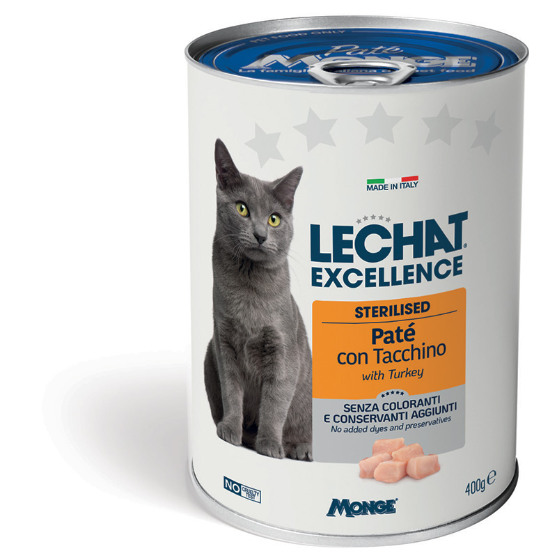 LECHAT EXCELLENCE PATÉ CON TACCHINO è un alimento completo per gatti adulti sterilizzati di età superiore ai 12 mesi. Una deliziosa ricetta Made in Italy, senza coloranti, conservanti artificiali e zuccheri aggiunti.